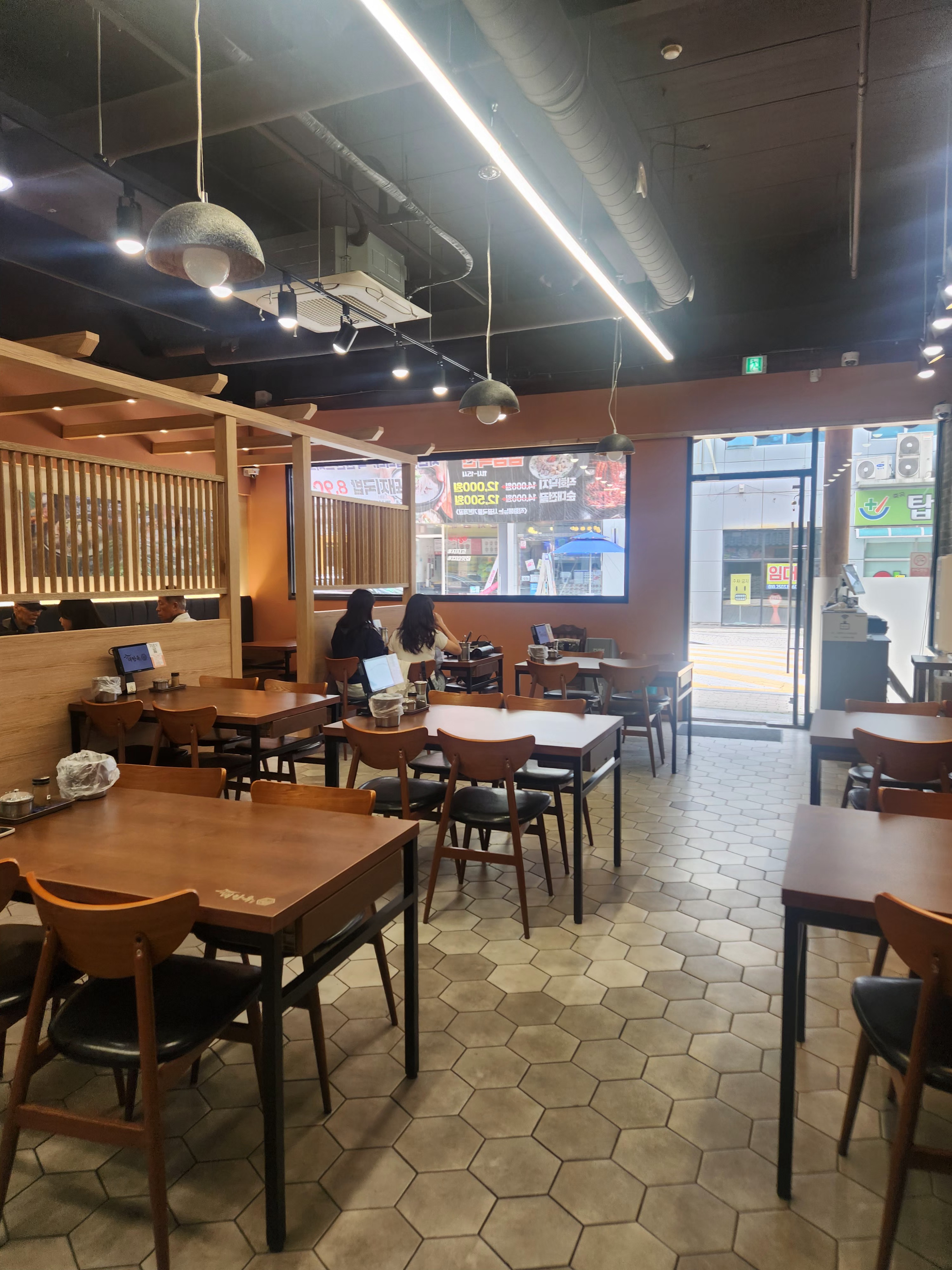 실내는 깔끔하고 테이블 간격도 넓은 편이라