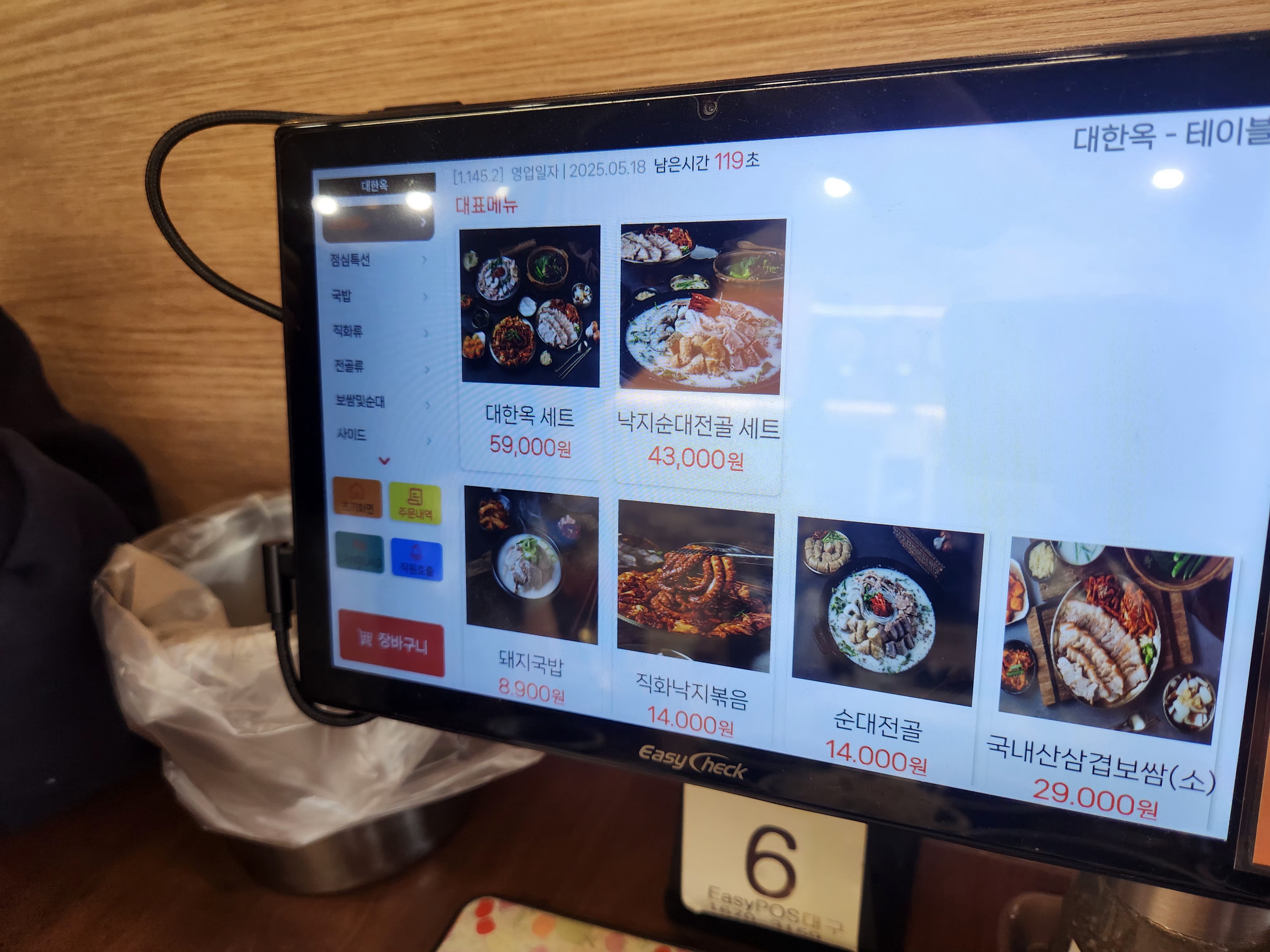 대한옥 세트라고 보쌈과 순대전골, 낙지볶음이 있는 세트가 있고,