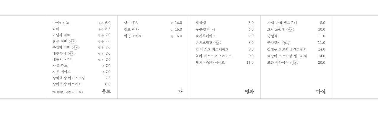 - 대표 메뉴: 한식 디저트, 시그니처 음료 등