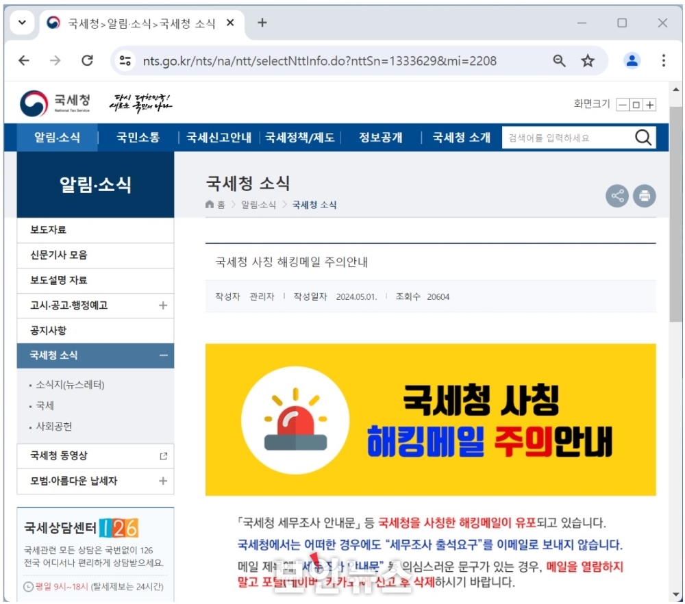 → 국세청 고객센터 126번 → 1번 → 2번으로 전화하거나