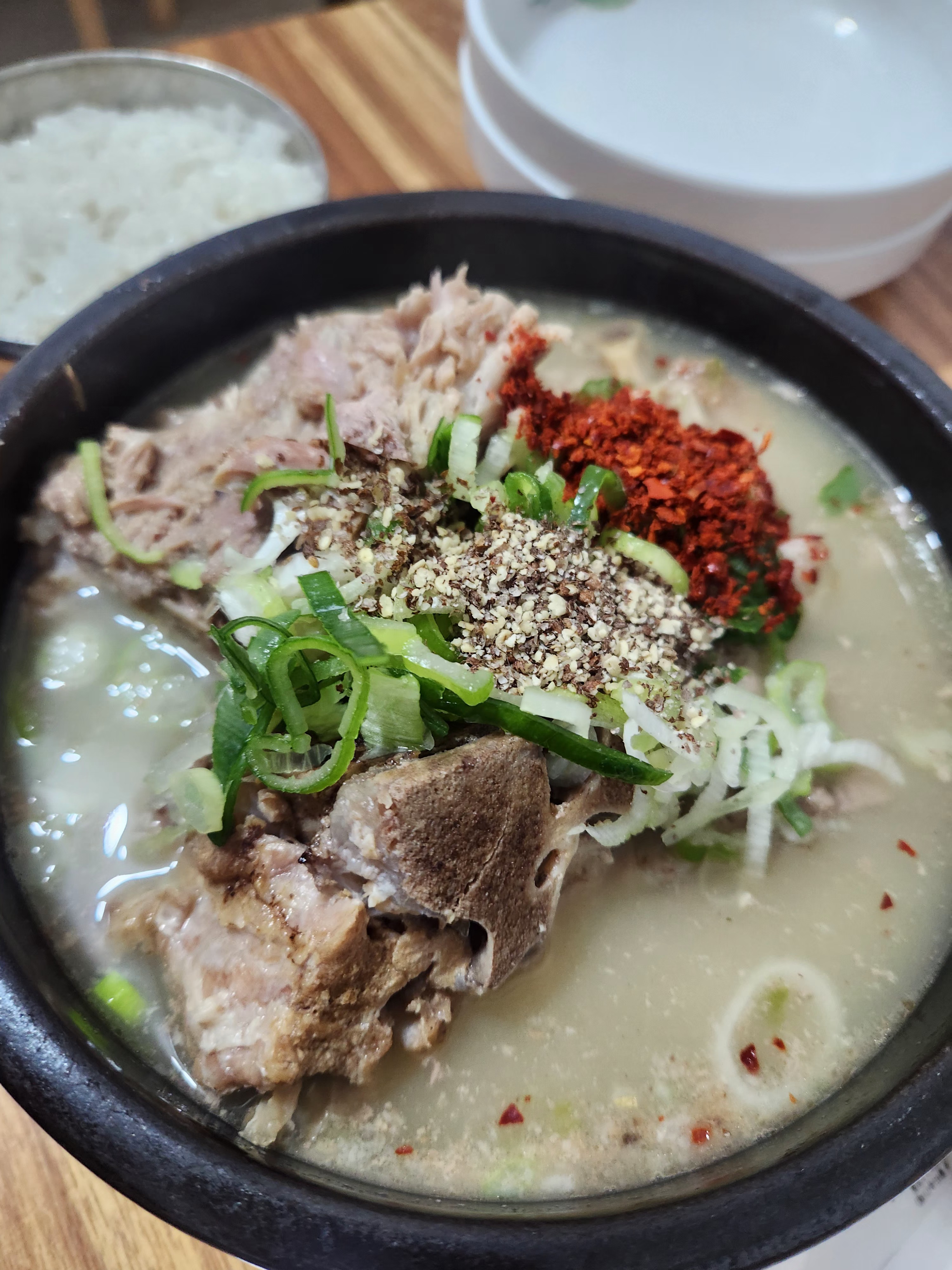 첫 숟갈에 국물 맛은 적당히 진하고 자극적이지 않아 속이 빨리 안정되는 느낌이었어요.