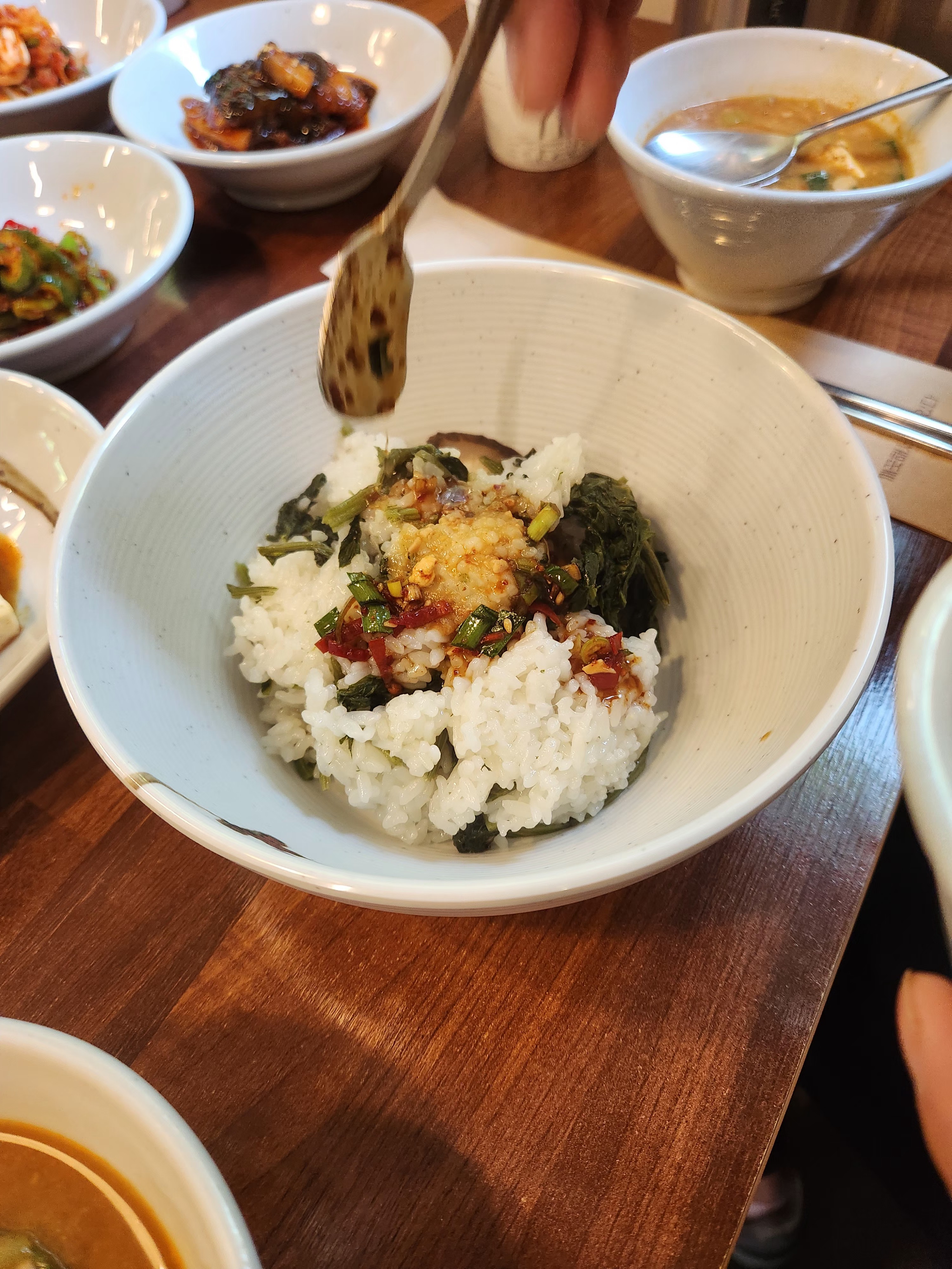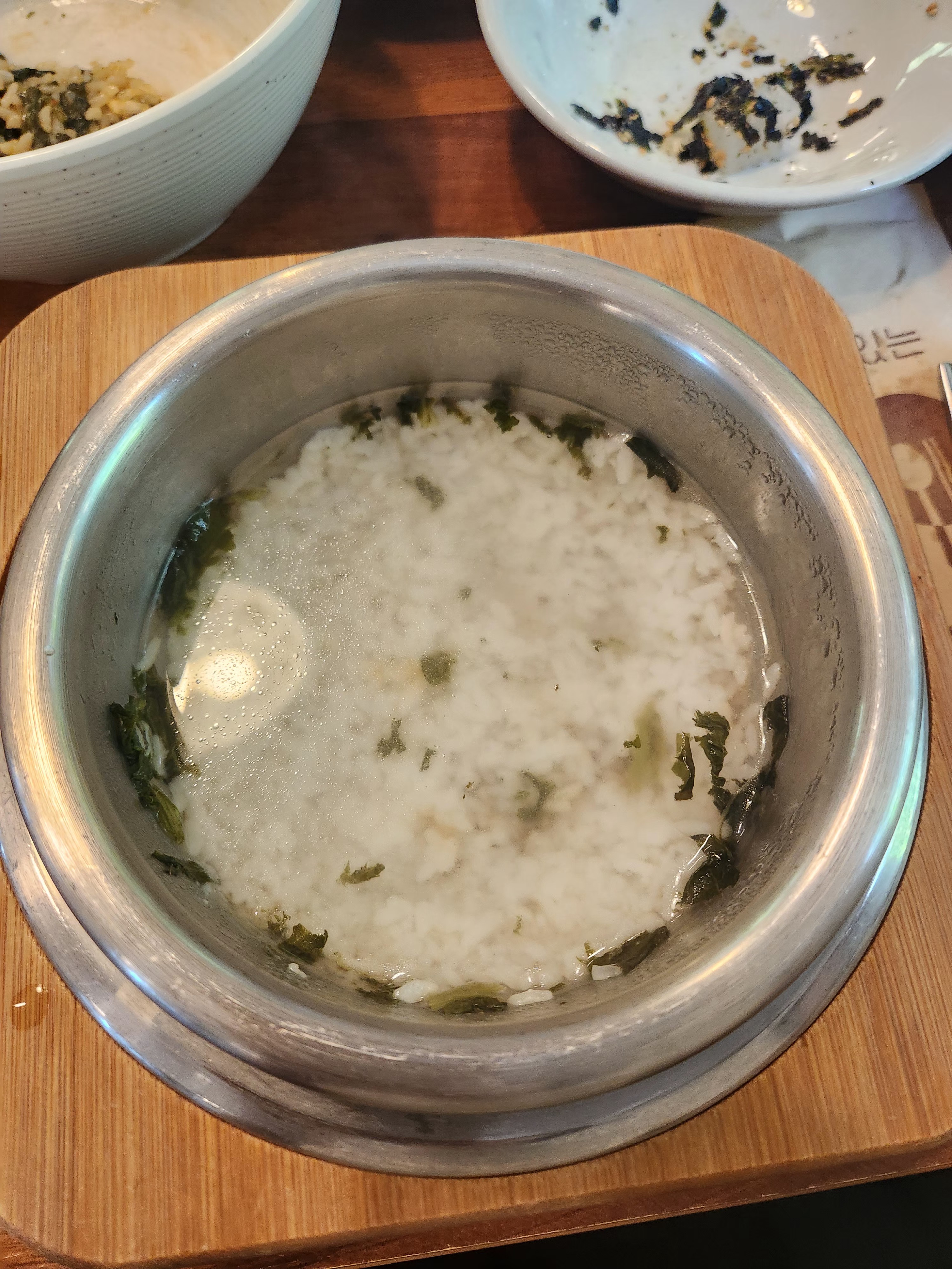 곤드레 향이 강하지 않아서 부담 없었고, 누룽지도 바삭하게 잘 생겼어요.
