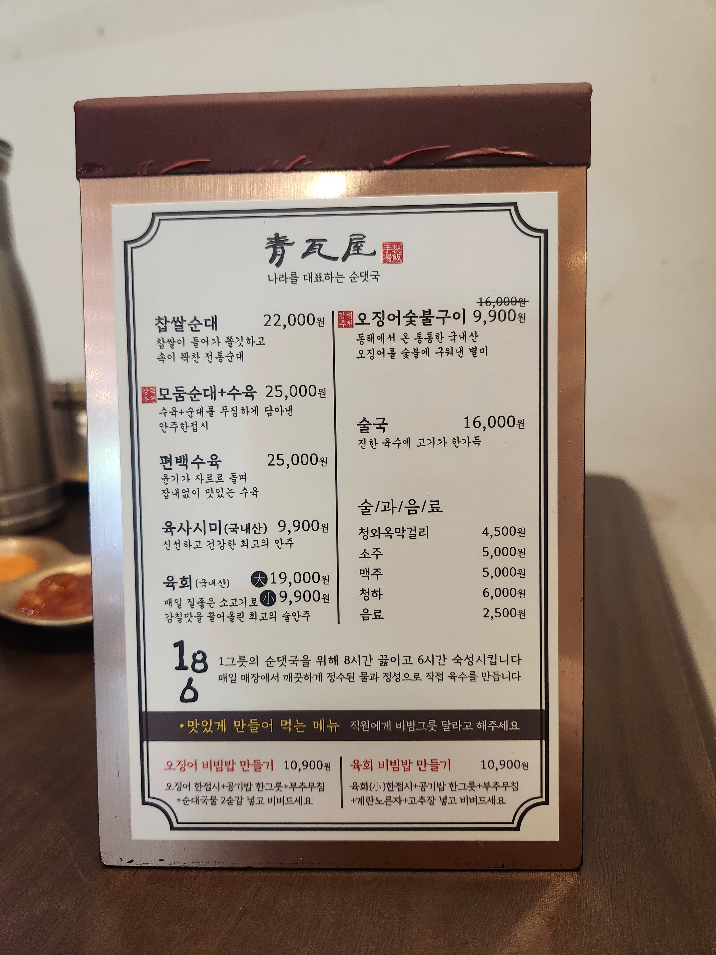 서울에서 순대국밥 하면 빠지지 않는 곳이 바로 청와옥 본점이에요.